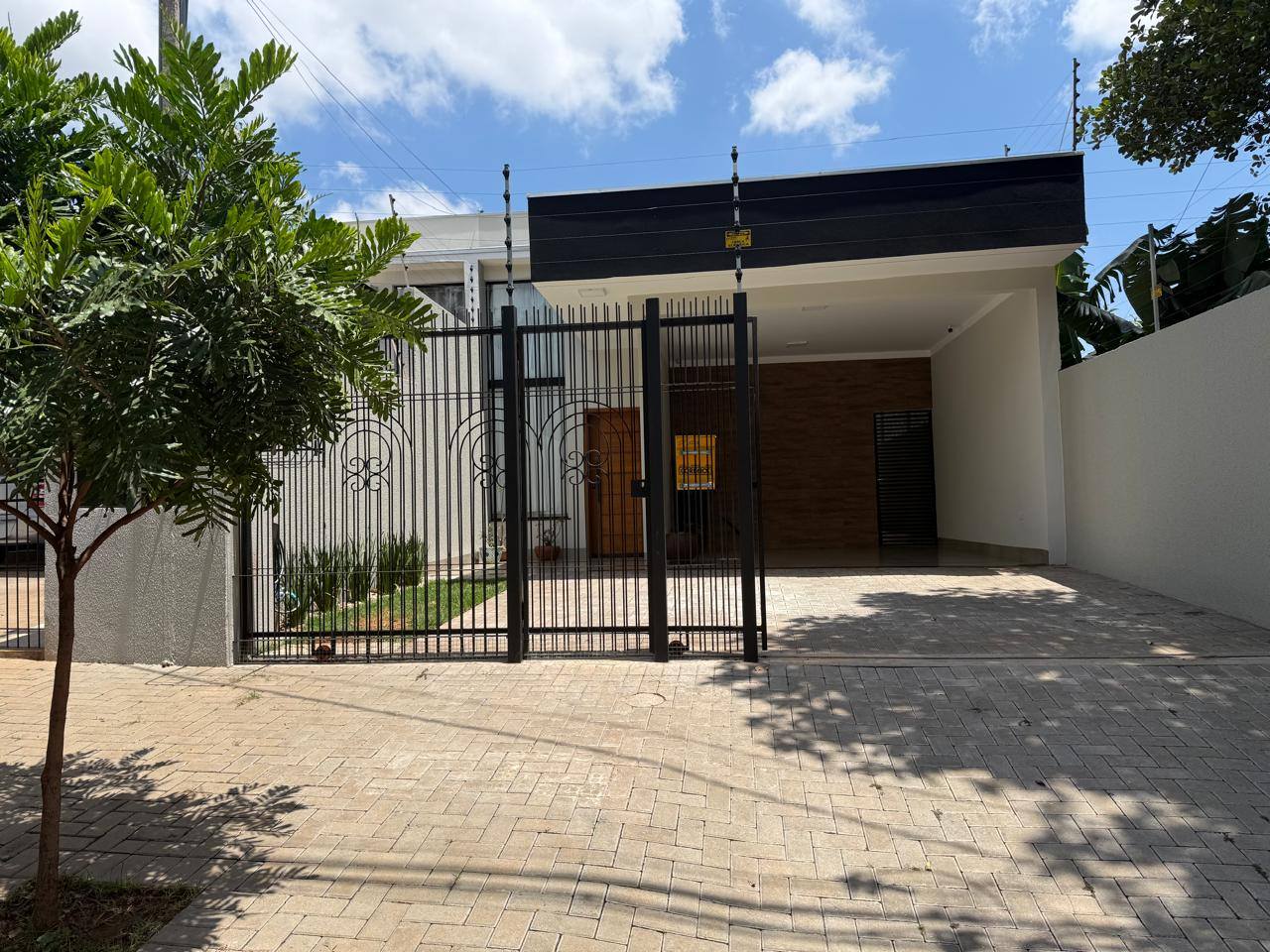 VENDO CASA. Localizada no Jd. Ouro Branco. Em uma área privilegiada da cidade de Paranavaí, próximo do Parque Ouro Branco, a três quadras da Praça dos Pioneiros e muito próxima ao centro e supermercado. Destalhes do imóvel: ➡️ Terreno: 214m² ➡️ Área construída 105m² + edícula ➡️sala com pé Direito alto e móveis planejados. ➡️Cozinha com móveis planejados ➡️04 quartos sendo 1 suíte. ➡️2 banheiros sendo 1 banheiro social e + 1 lavabo. ➡️Área de serviço coberta. Piso em porcelanato. Os banheiros contam com bancada em granito, box, espelhos e nicho. ➡️Garagem coberta para dois carros. ➡️Corredor lateral coberto. ➡️Cerca elétrica e alarme. ➡️Espaço nos fundos com jardim. ➡️Area gourmet com churrasqueira, pia de granito, lavabo e quarto. Investimento 690.000.00 Gostou? Fale com os corretores Corretores MorangueiraeEloiza